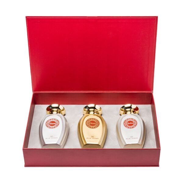 A remarkable gift set containing exclusive and enticing references of Blue Ocean Brand. The set contains three perfumes which are Forever, Elodie, and Godina that come in premium packaging.